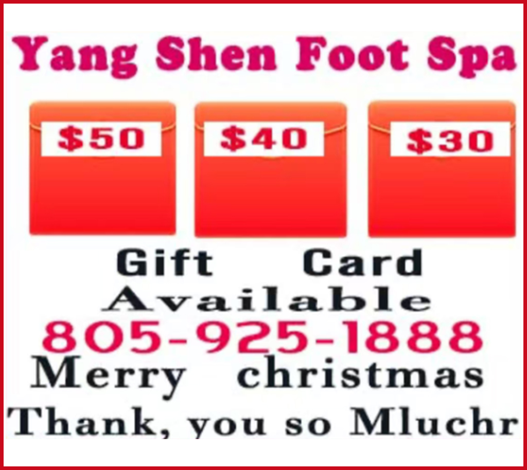 During Christmas, our store has gift cards for sale at low prices. People who like massage or old customers of our store, hurry up and buy them. All the staff of Yang Shen Foot Spa look forward to providing you with more perfect service.
